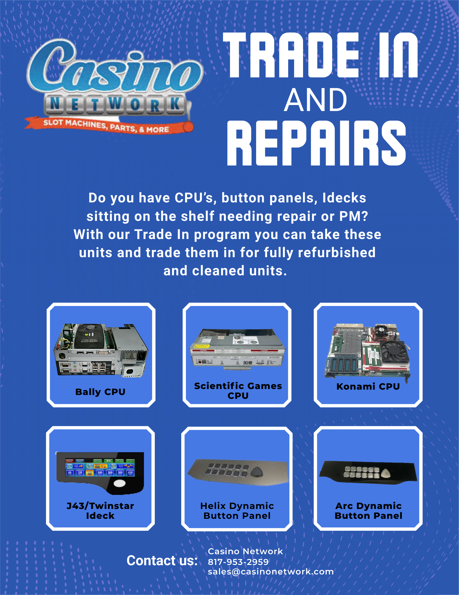 Do you have CPUs, button panels, or Idecks gathering dust because they need a fix? Don't let them sit there—trade in your worn-out parts for fully refurbished and cleaned units today!